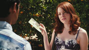 During the weekend, Olive apparently has a birthday where her grandmother (whom we never meet and there is never another mention of her in this film) has send Olive a card. It is one of those cards that has a song inside whenever you open it, this one just happening to be "Pocket Full of Sunshine". Olive, at first, dubs it the worst song ever, but over the weekend becomes attacted to it, listening to it all weekend, and even singing along, as she paints her toenails, plays with her dog, and she even sings it in the shower.